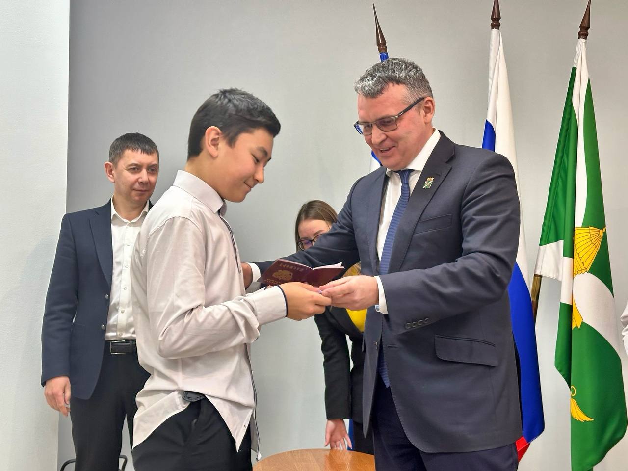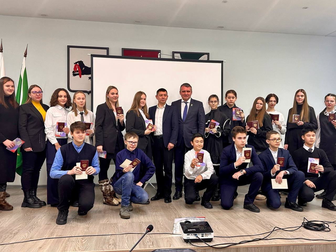 Церемония вручения паспортов школьникам состоялась сегодня, 12 декабря, в администрации Усть-Кутского района. Всего вручили паспорта 17 ребятам, отличившимся в учёбе, спорте, творческой и общественной деятельности.