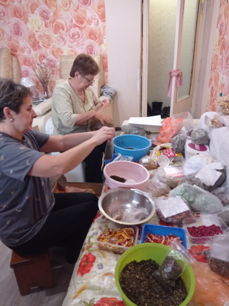 Сейчас наши прекрасные женщины-волонтёры неустанно работают над изготовлением сухих пайков для бойцов-участников СВО. В меню входят различные супы, каши и чаи.