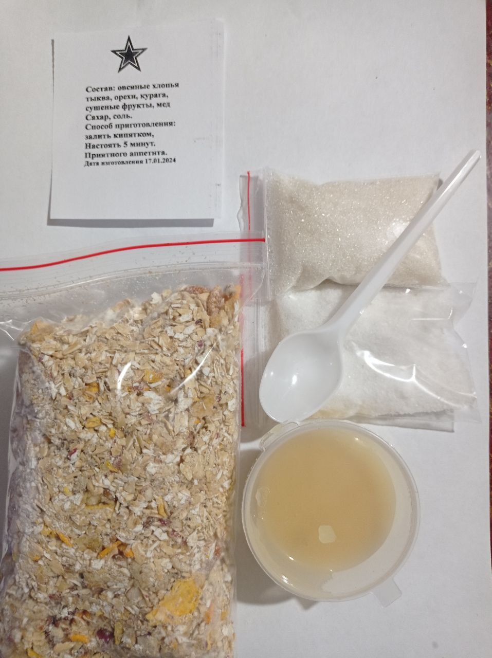 В сухие супы добавляют порционные пакетики с майонезом «Янта», о котором просили сами мужчины на передовой. А в каши кладут дополнительно порцию сахара и мёда. Также сейчас начали приносить перемолотое или упакованное сало.