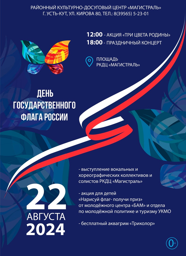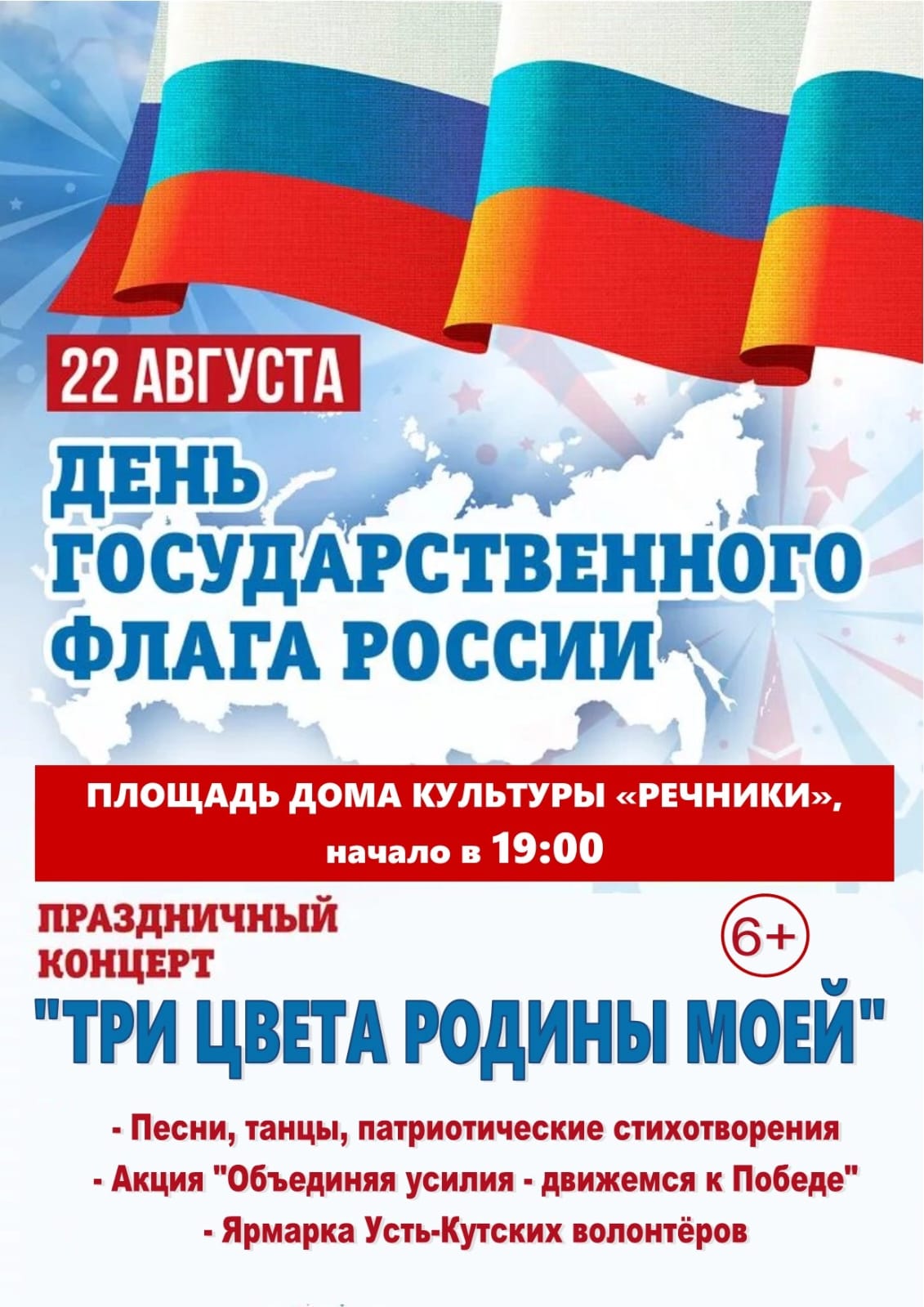 22 августа в России празднуют День государственного флага. В связи с этим в Усть-Кутском районе запланирован ряд мероприятий.