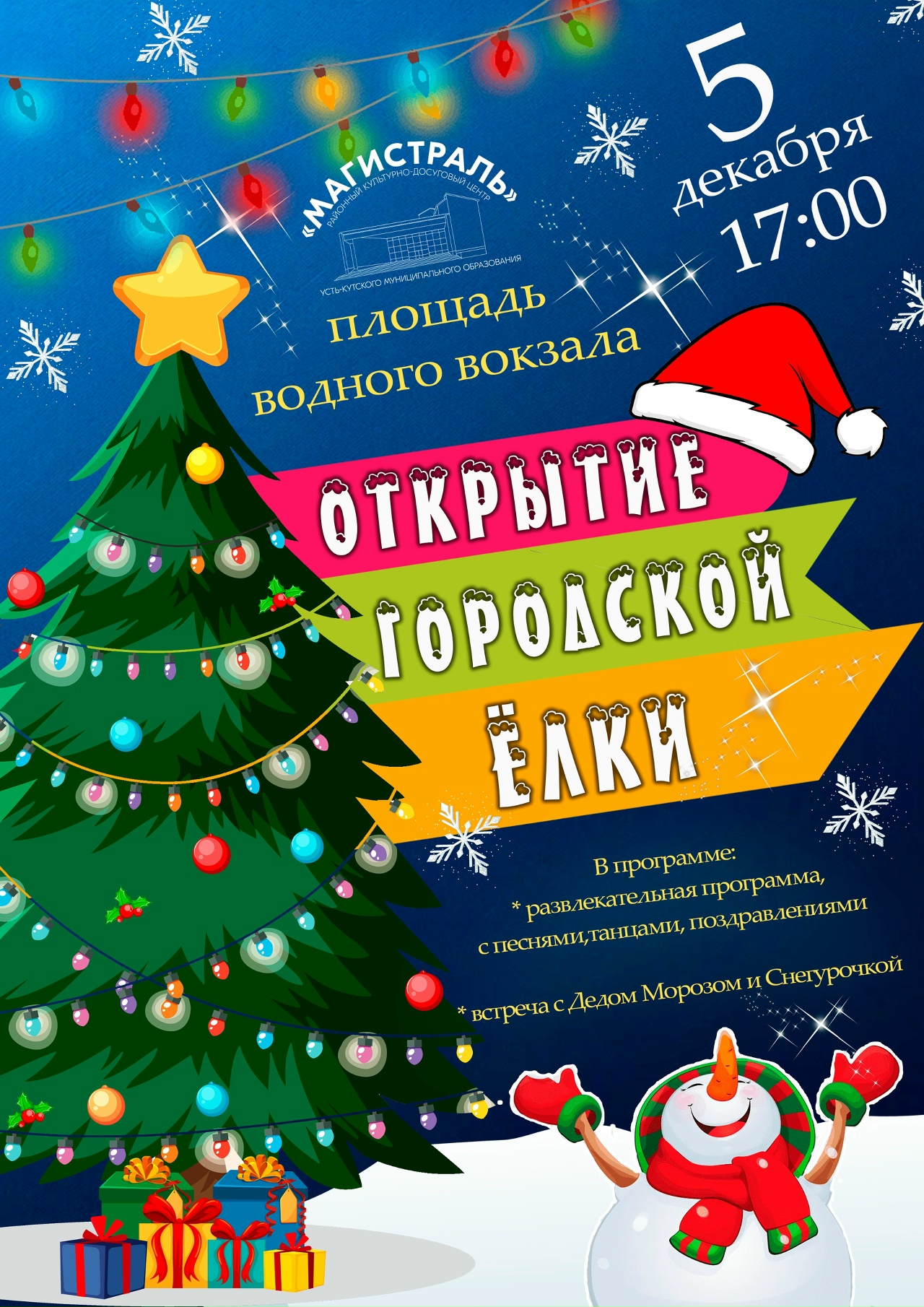 Уже 5 декабря в нашем городе зажгутся первые праздничные огни — пройдут открытия городских ёлок! Приглашаем всех жителей и гостей Усть-Кута на большое зимнее веселье!