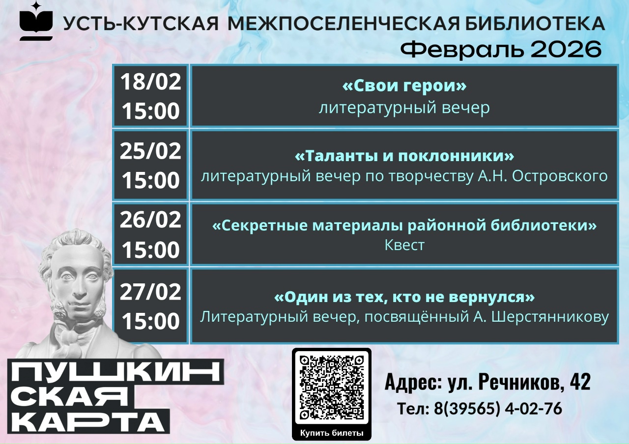 Вот, например, что можно посетить до конца февраля в Межпоселенческой библиотеке — отличная возможность провести время интересно, познавательно и с пользой.