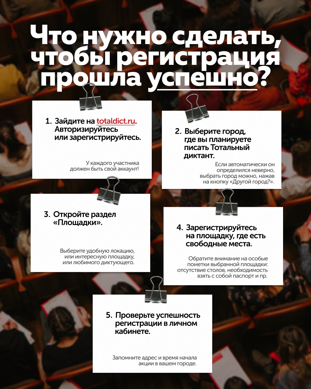 Чтобы попасть на «Тотальный диктант», нужно зарегистрироваться на сайте totaldict.ru